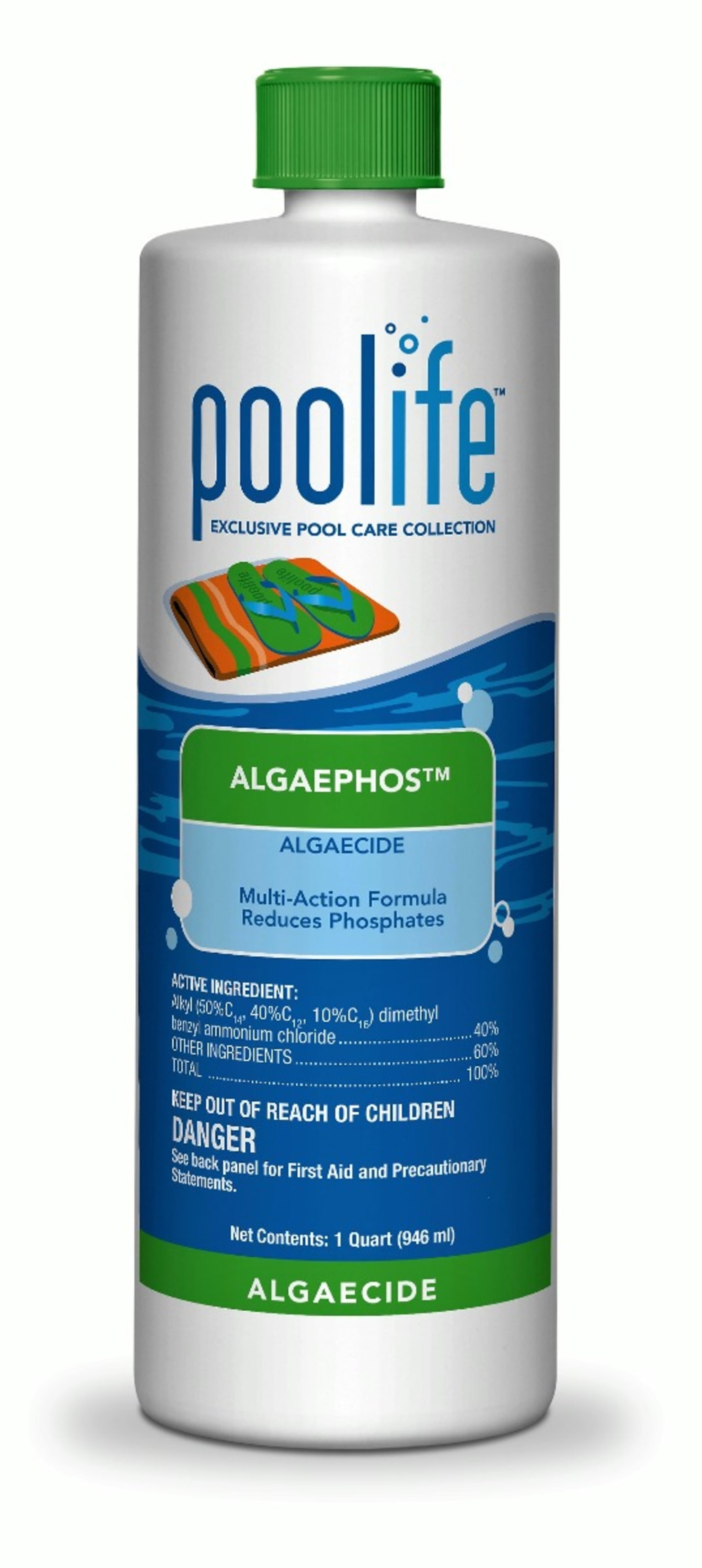 INITIAL APPLICATION: : 1. For clean pools, add 16 oz. of poolife® AlgaePhos™ algaecide per 25,000 gallons of water directly to the pool. 2. Operate the pump continuously for 24 hours to allow the product to be evenly distributed and to allow the filter to recover any phosphates removed from the water.