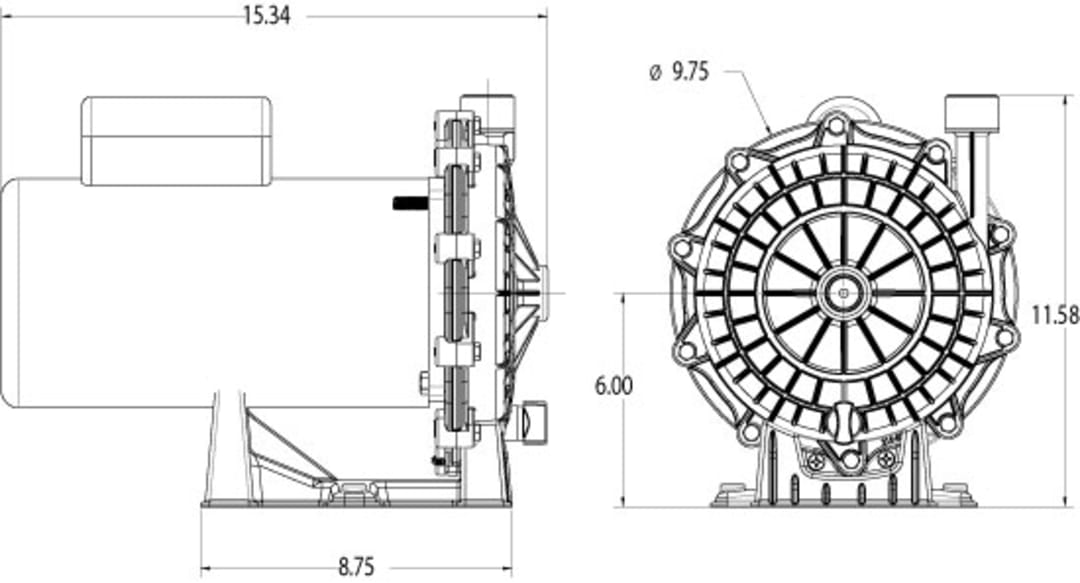 Equipped w/high efficiency square flange 3/4 HP, 230/115 V motor. Provides extra quiet, long life operation and optimum energy efficiency.