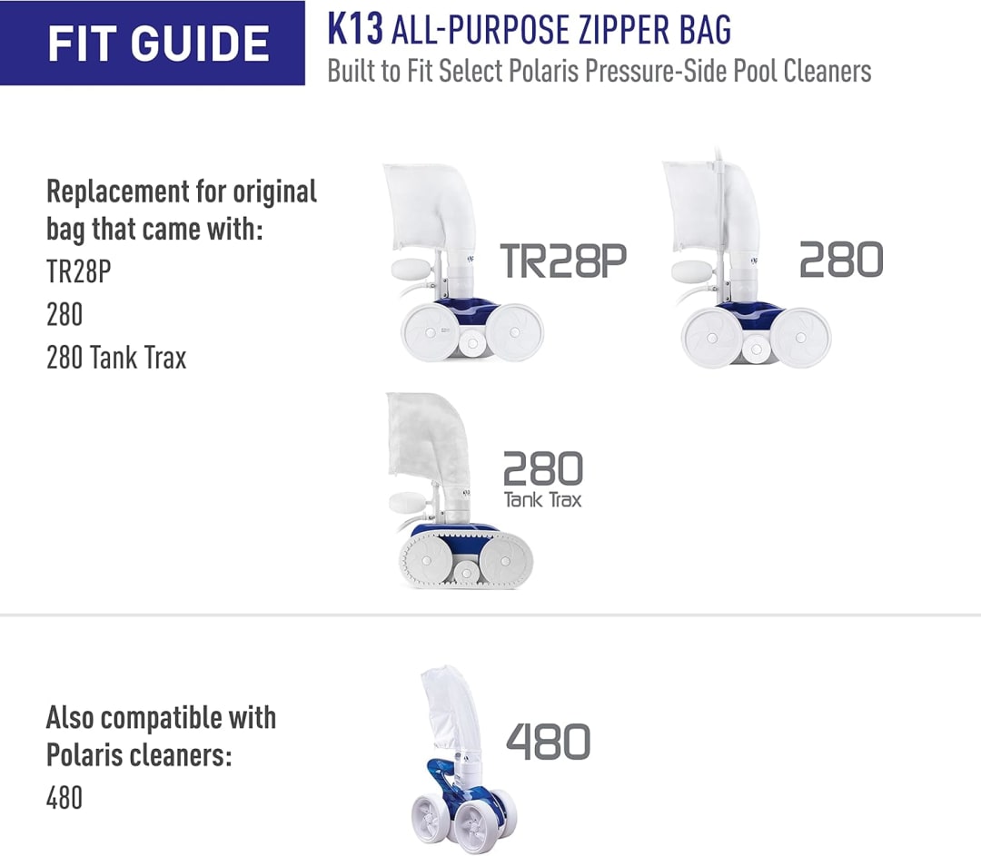 | Product Name | Genuine Parts K13 All-Purpose Zipper Replacement Debris Bag, for Automatic Pressure Pool Cleaner Vac-Sweep 280/TR28P |