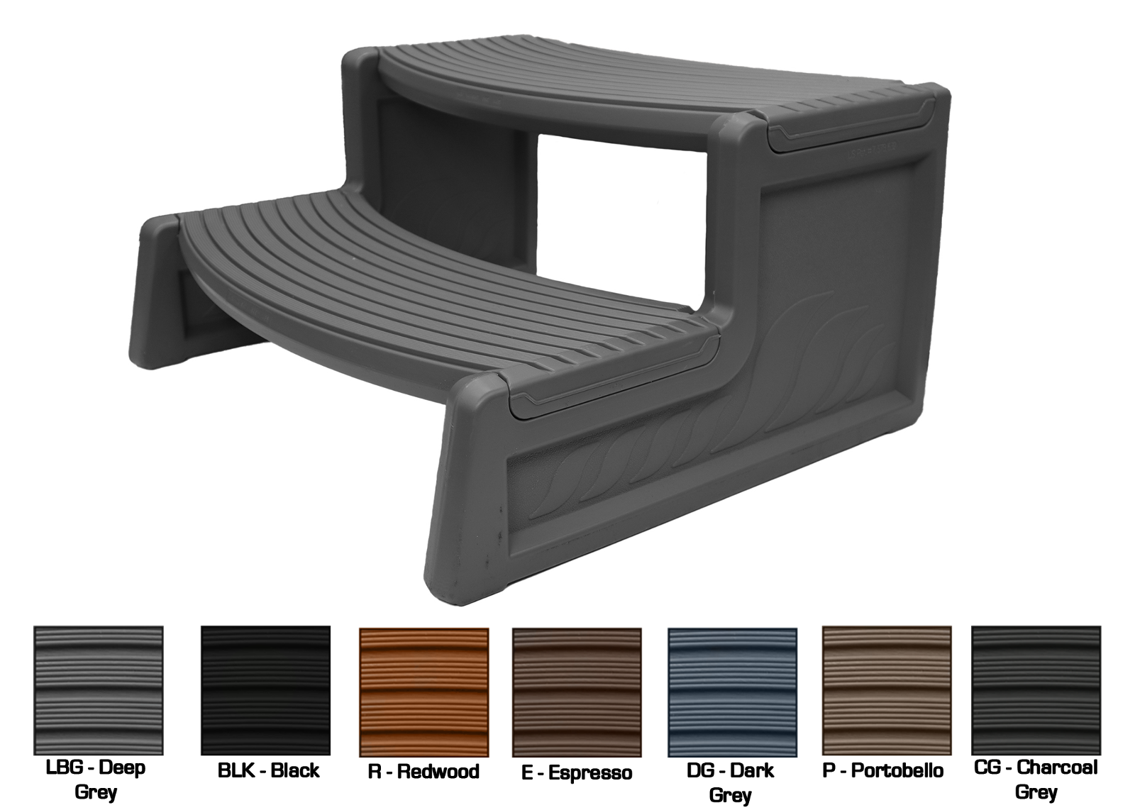 Conifer Plastics HS2-BLK 29" Black Universal Handi-Step. Our new, completely redesigned spa step was created with durability and versatility in mind. The new HS 2 Handi-Step incorporates the ability to use our step with a straight-sided spa or a rounded spa. Construction is literally just a few snaps
