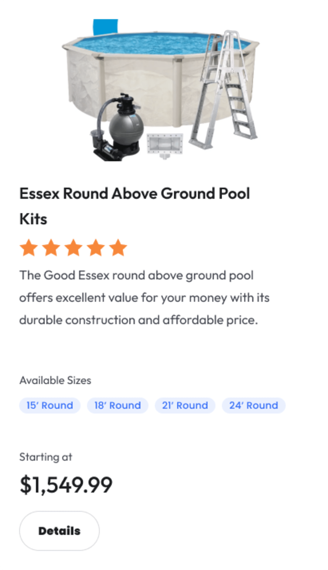 PoolZoom.com offers a wide range of above ground swimming pools, providing an easy and convenient way to have your own backyard oasis. With our selection of pool kits, curbside delivery, and DIY installation, you can start enjoying your pool in no time and have years of swimming fun ahead of you.