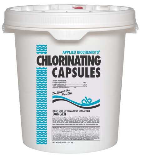 Applied Biochemists Chlorinating Capsules are a multi-purpose 10.5 oz caplet that are easy and convenient to use. This product controls algae, kills bacteria and destroys organic contaminants. They are designed to be tossed in the skimmer basket and provide a steady source of available chlorine for complete swimming pool enjoyment.