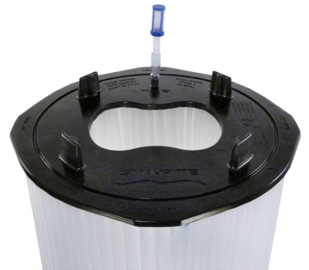 The filter module assembly also includes a top manifold with integrated air relief valve, which helps to remove any trapped air from the system and ensures optimal water flow through the filter cartridges. The manifold is made of a tough, corrosion-resistant material that can withstand exposure to pool chemicals and environmental elements.