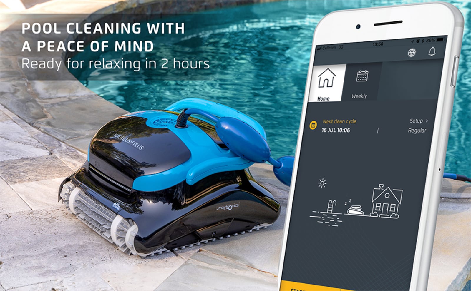 Clean from the palm of your hand with the MyDolphin Plus app. This Wi-Fi connected robotic pool vacuum allows you to start the 2-hour cleaning cycle and create a weekly cleaning schedule while you are on the go.
