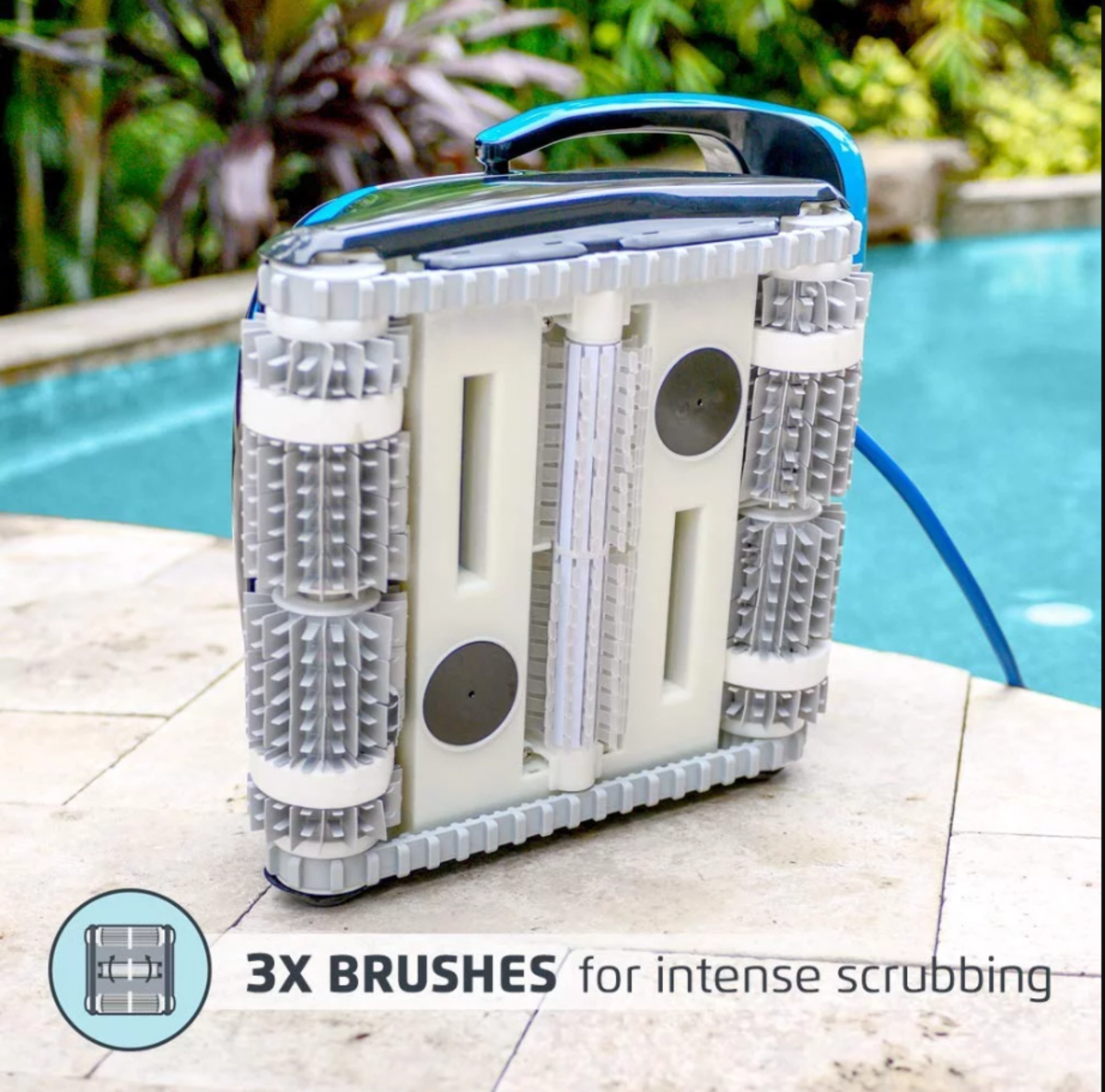 Equipped with a center scrubbing brush that spins twice as fast as the other two brushes. This cleaner pushes the limits for wall and waterline cleaning.