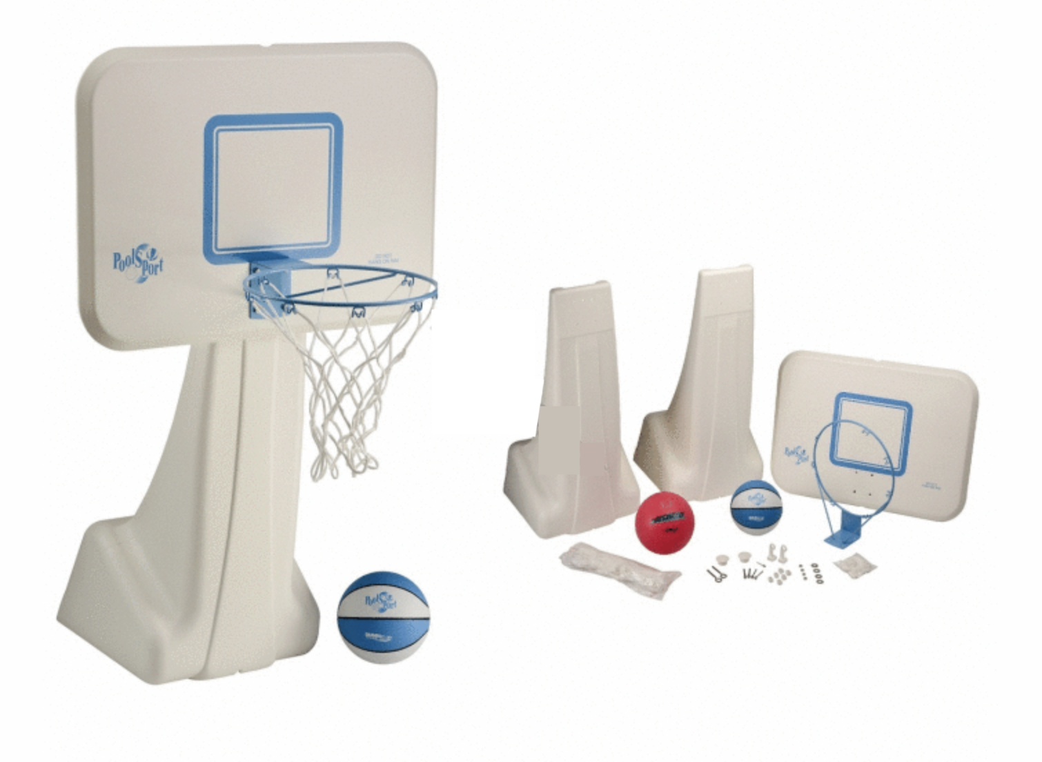 The Dunn-Rite Products Inc B880 Junior Hoop. A COMPACT, MIDSIZE BASKETBALL UNIT For saltwater & freshwater system pools or lakes and ponds The Junior Hoop enjoys the same premium quality as our larger regulation-sized basketball sets but has a smaller footprint and is more compact. Perfect fit for younger players or if you're looking for a sleeker unit this poolside basketball unit is great for the whole family - everyone will feel like a pro. Comes with everything you need before the big game's tip-off: rim, basketball, backboard, base and hardware.