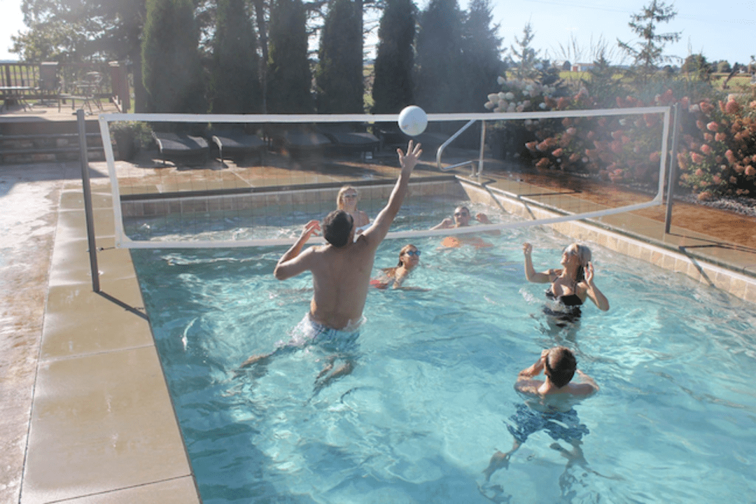 Includes Two 304 Stainless Steel Posts, 16’ or 20’ Competition Quality Adjustable Net, Water Volleyball, and Needle