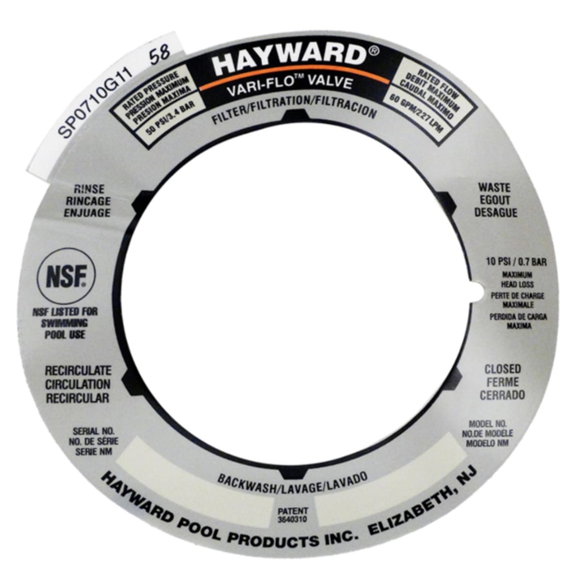 Hayward SPX0710G Vari-Flo Valve Replacement Label Plate 1-1/2" SP0710 - SP0710G11 This label is a peel and stick type label. It has a 3M adhesive on the back side, with protective paper strips which peel off in sections, allowing for ease of placement.