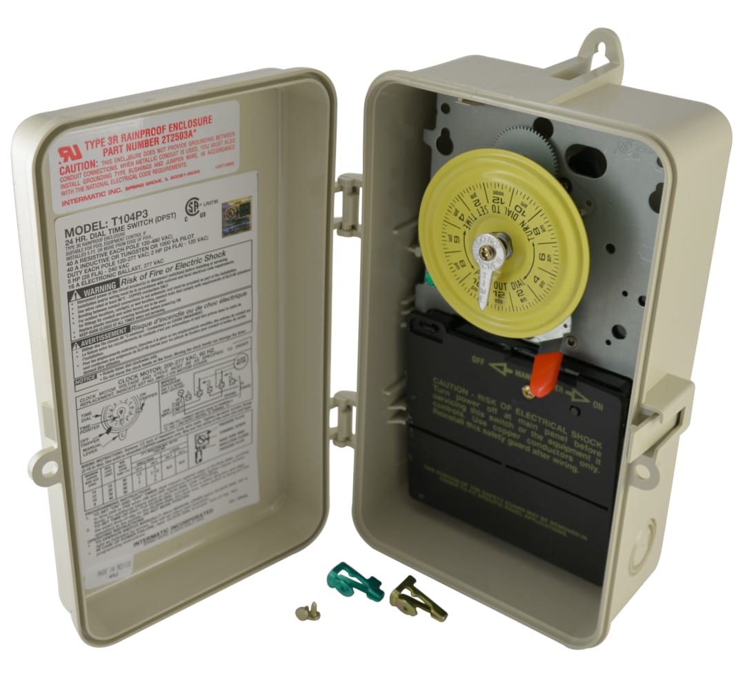 Intermatic T104P3 24-Hour DPST Mechanical Time Switch w/ Plastic Enclosure 208-277V