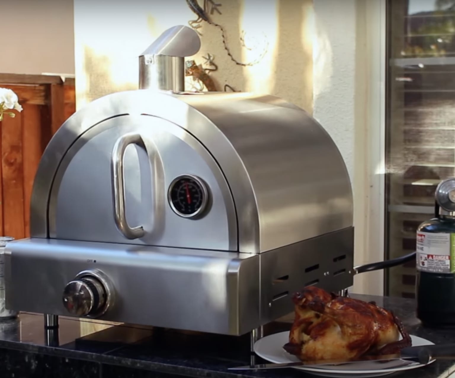 The Mont Alpi Pizza oven has been specifically designed to provide perfect authentic pizza with the added bonus of being a mini oven for other foods, roast a chicken, tri-tip or prime rib in this outdoor oven. The Mont Alpi outdoor pizza oven is great for portable use and just as good as an addition to the side shelf of your full size grill or outdoor island.