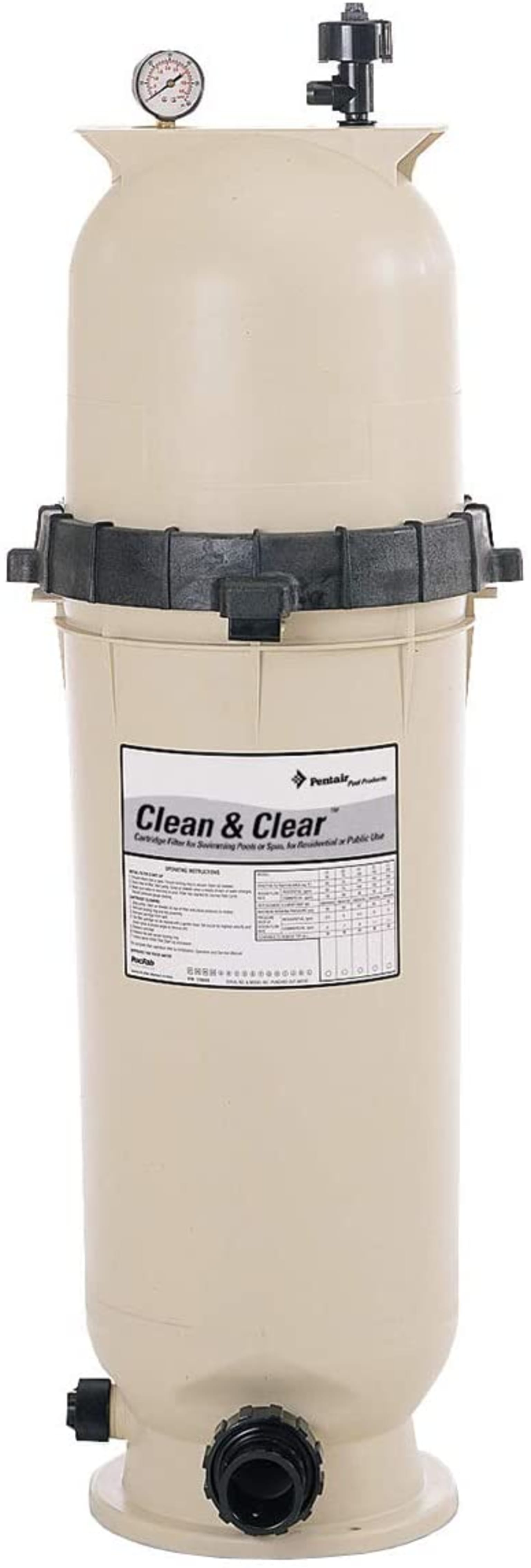 Long-lasting Clean & Clear Cartridge Filter with fiberglass-reinforced, chemical resistant, polypropylene tanks are among the simplest to maintain. The easily accessible cartridge can be rinsed clean in minutes with a garden hose. Pool pros love the easy spin-on unions that provide fast hookup and servicing.