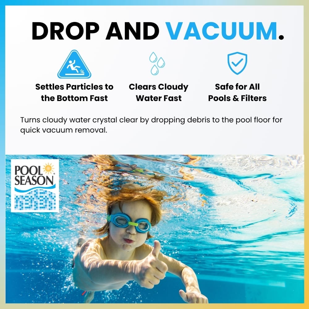 Clears dull or cloudy water by dropping particles to the pool floor for vacuum removal