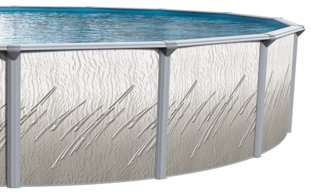 The Pretium aboveground pool boasts an impressive 52" wall made of steel, that is then coated with Texture-Kote for ultimate durability against all types of weather. The quadra-fold pattern of the wall provide maximum wall strength, corrugated walls increase the pool's resistance to ice and impact damage.