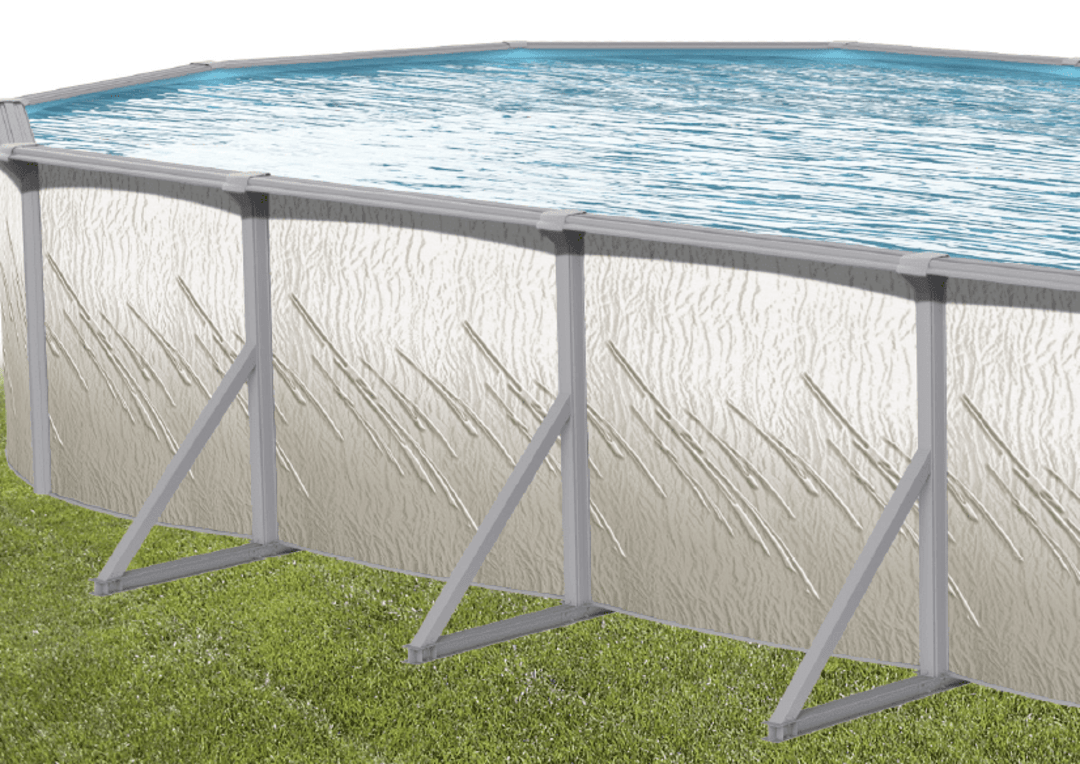 The Pretium aboveground pool boasts an impressive 52" wall made of steel, that is then coated with Texture-Kote for ultimate durability against all types of weather. The quadra-fold pattern of the wall provide maximum wall strength, corrugated walls increase the pool's resistance to ice and impact damage.