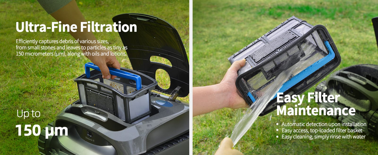 Powerful Cleaning & Wall Climbing: Equipped with a 200W brushless motor delivering 5500GPH suction, it climbs walls, including curved surfaces, while capturing debris in the ultra-fine 150μm filter basket.