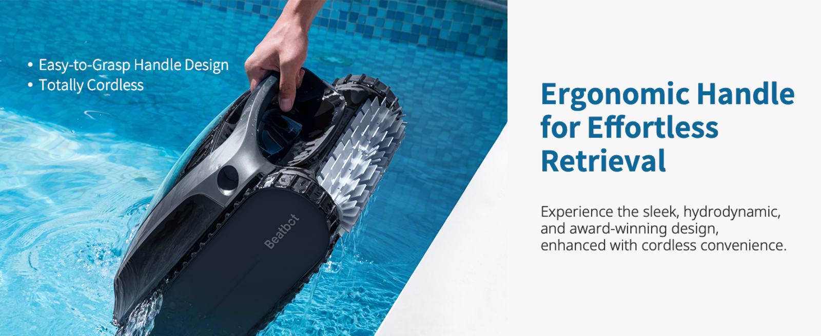 Cordless Convenience: Cleans the pool floor, walls, and waterline with a cordless design, offering up to 3 hours of cleaning on a single charge, and includes a cordless charging dock for easy recharging.