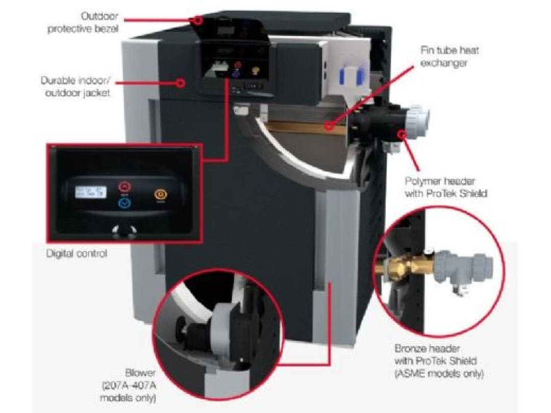 ProTek Shield is a cutting-edge module that protects the heat exchanger and extends the life of your Raypak ASME Digital Gas Pool and Spa Heater. Rest, soak or swim knowing that your pool heater investment can be enjoyed even longer thanks to this innovative, patent-pending technology.