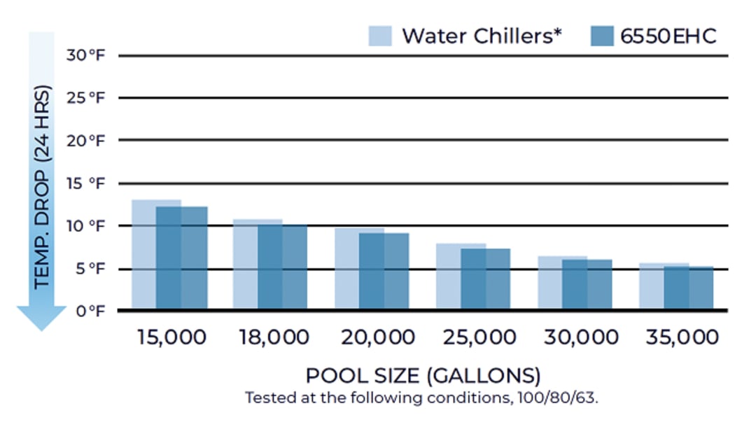 Complete Pool Chill Function: Cools 15,000 gallon swimming pool upto 5–8°F in 24 hours—perfect for hot climates