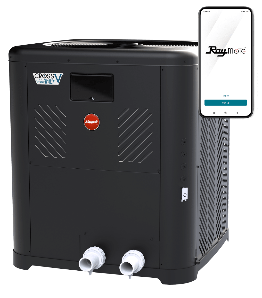 Pair the Crosswind V heat pump with a Raypak AVIA gas heater for the ultimate in efficiency. With advanced heat source delegation powered by the Raymote app, the Crosswind V and AVIA work seamlessly together, intelligently alternating between the heat pump and gas heater based on current conditions. This setup ensures your pool stays at your desired temperature in the most energy-efficient way possible, giving you year-round comfort and savings.