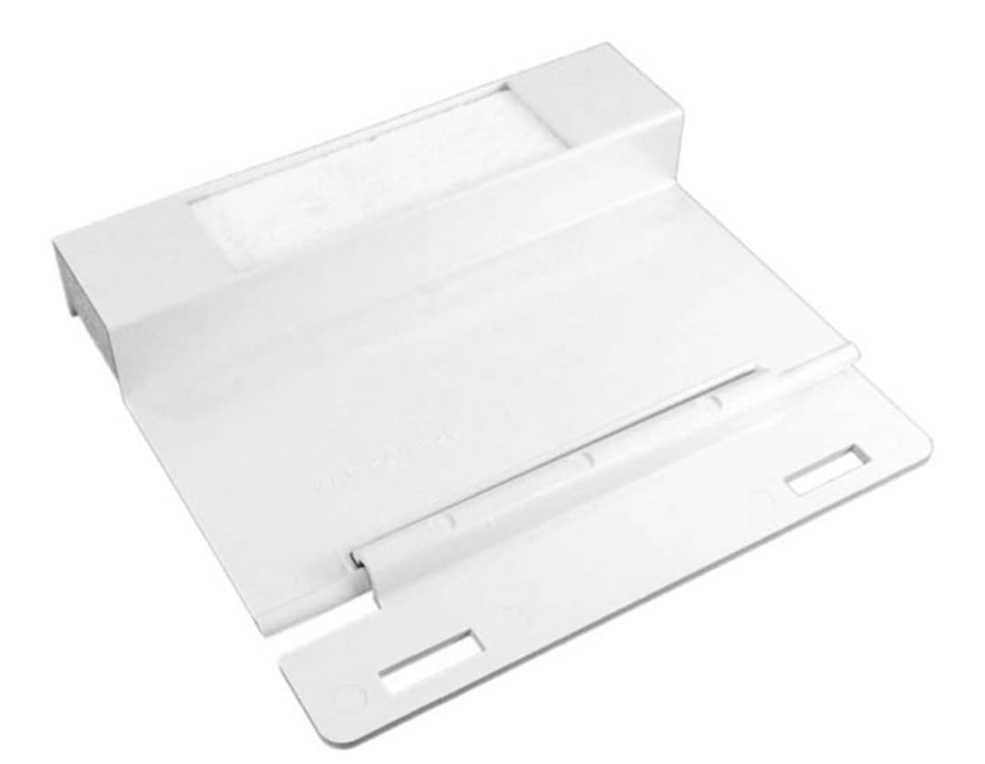 The package contains a Pac-Fab SkimClean Weir replacement that comes with a plastic hinge. The hinge is designed to snap onto the weir and then be screwed onto the skimmer body. Additionally, the package includes foam.