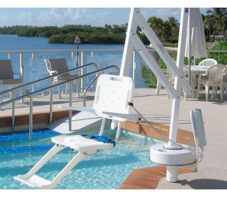 The Splash! Lift series meets the Americans with Disabilities Act Access Guidelines (ADAAG 2010). In addition to the standard configuration, the Splash! lift is also available in Hi/Lo, Spa, Extended Reach, Splash! 300, Splash! 300 Hi/Lo, and Splash! 300 Spa versions. The Splash! lift installs into your pool deck via anchor, and can be easily removed for winter storage. 359° rotation ensures a safe transfer area.