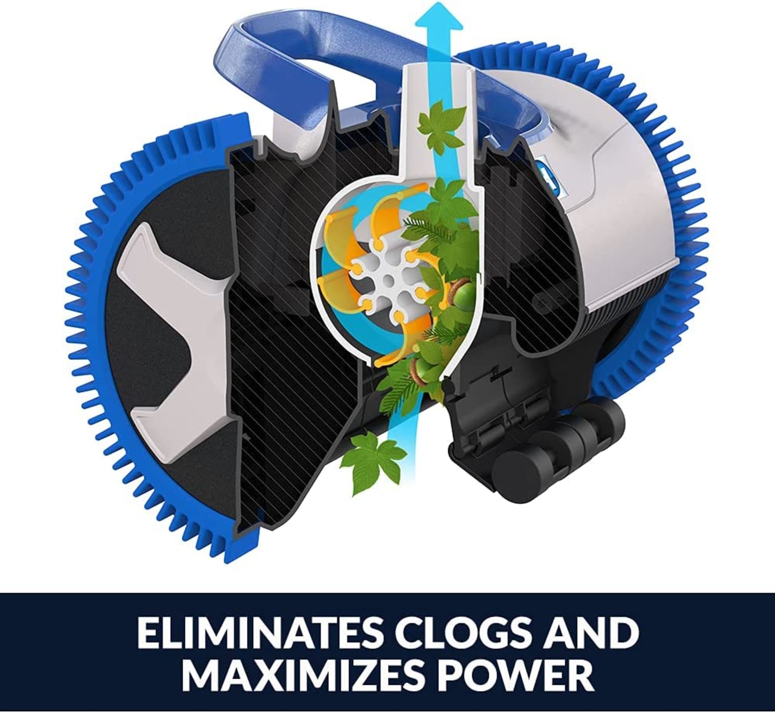 The Hayward AquaNaut 400 features a self-adjusting throat that allows variable vanes known as V-Flex to automatically adjust allowing any size debris to pass through the cleaner. The V-Flex technology delivers the most power at any flow rate and provides clog-free cleaning of leaves and other pool debris.