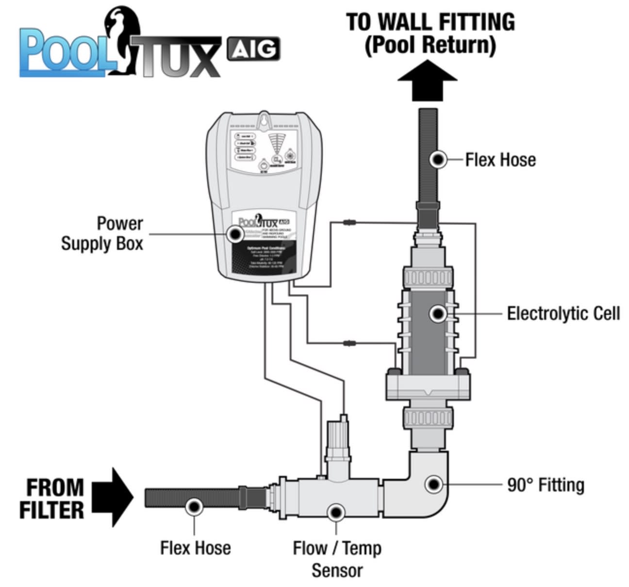 The Solaxx CLG928A PoolTux Salt Chlorine Generator is easy to install, with no special tools required. Simply connect the salt cell to the outside of your pool's return fitting using the fittings provided in the box, and plug in the power supply to a 110V GFCI outlet. LED indicator lights provide an instant snapshot of the system status, ensuring hassle-free operation.
