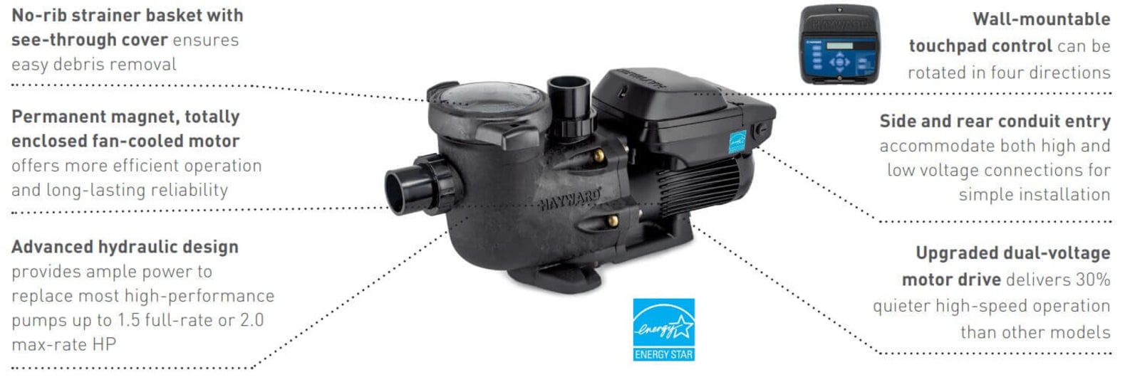 Hayward Tristar VS Variable Speed Pool Pump, 1.85HP 230V, Single Phase