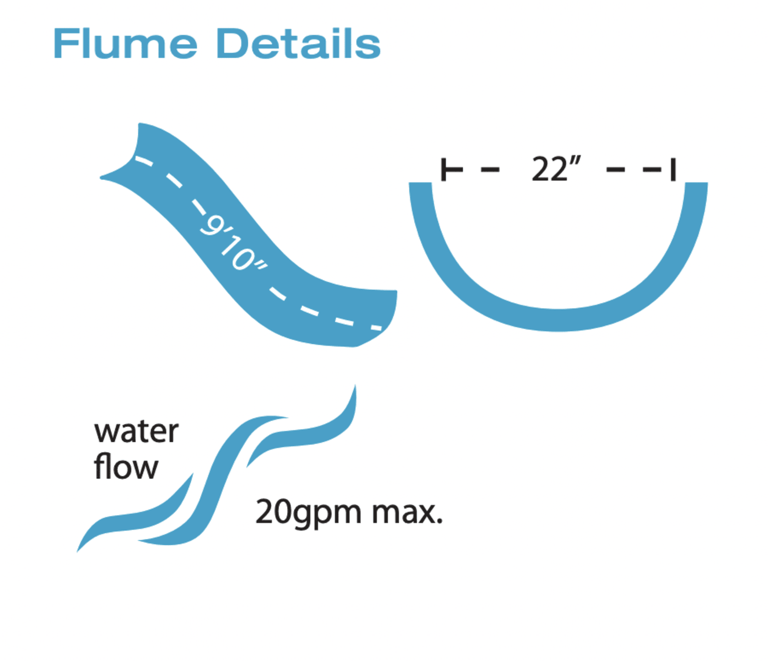 Specifications: Height: 7'4" (6'51/2" to seat). Available in right or left curves. Flume is 9'10" in length. Required deck space: 11'8" x 4'5". Weight limit: 275 lbs/124 kg.