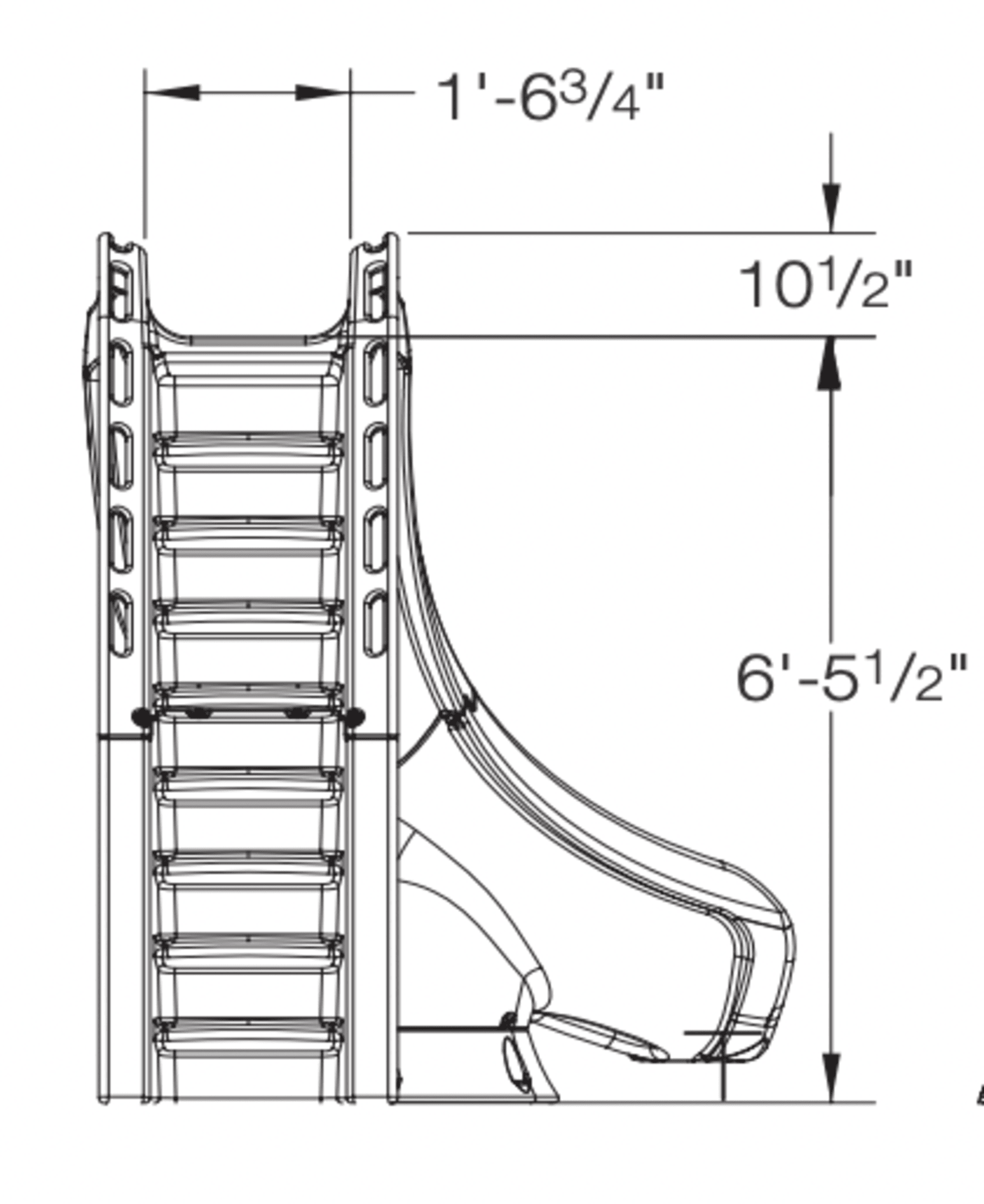 This full-sized addition to our rotomolded slide line (TurboTwister and Cyclone) stands 7'4" tall to the top of the handrails, and is available in sandstone and gray granite. New molded-in handgrips provide maximum safety for smaller users and our unique GrandRapids water delivery system offers lots of rushing water for a fun ride.