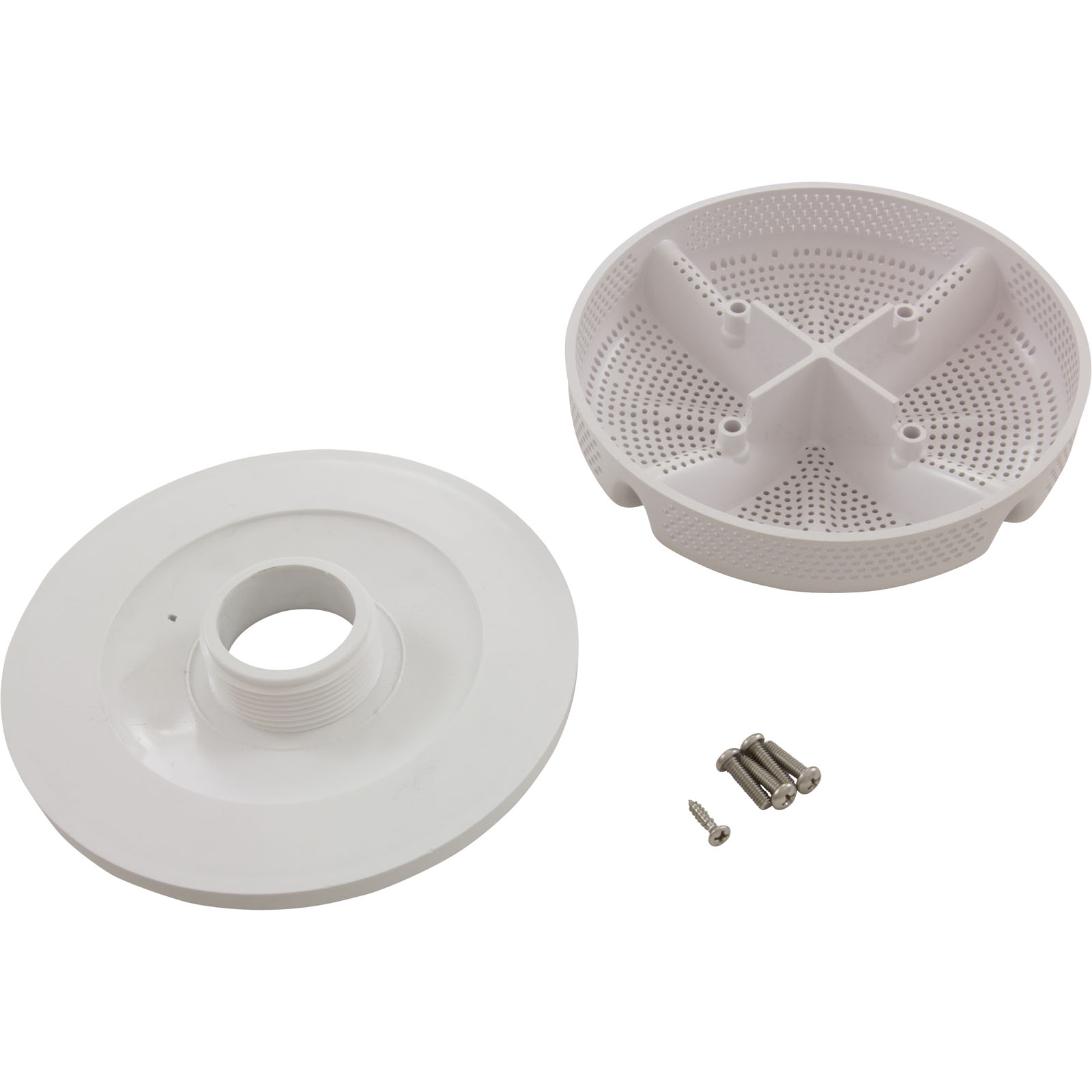 Waterway Plastics 640-8240 V Ultra Suction with 1-1/2 Inch Threaded Wall Fitting; 6 Inch; White