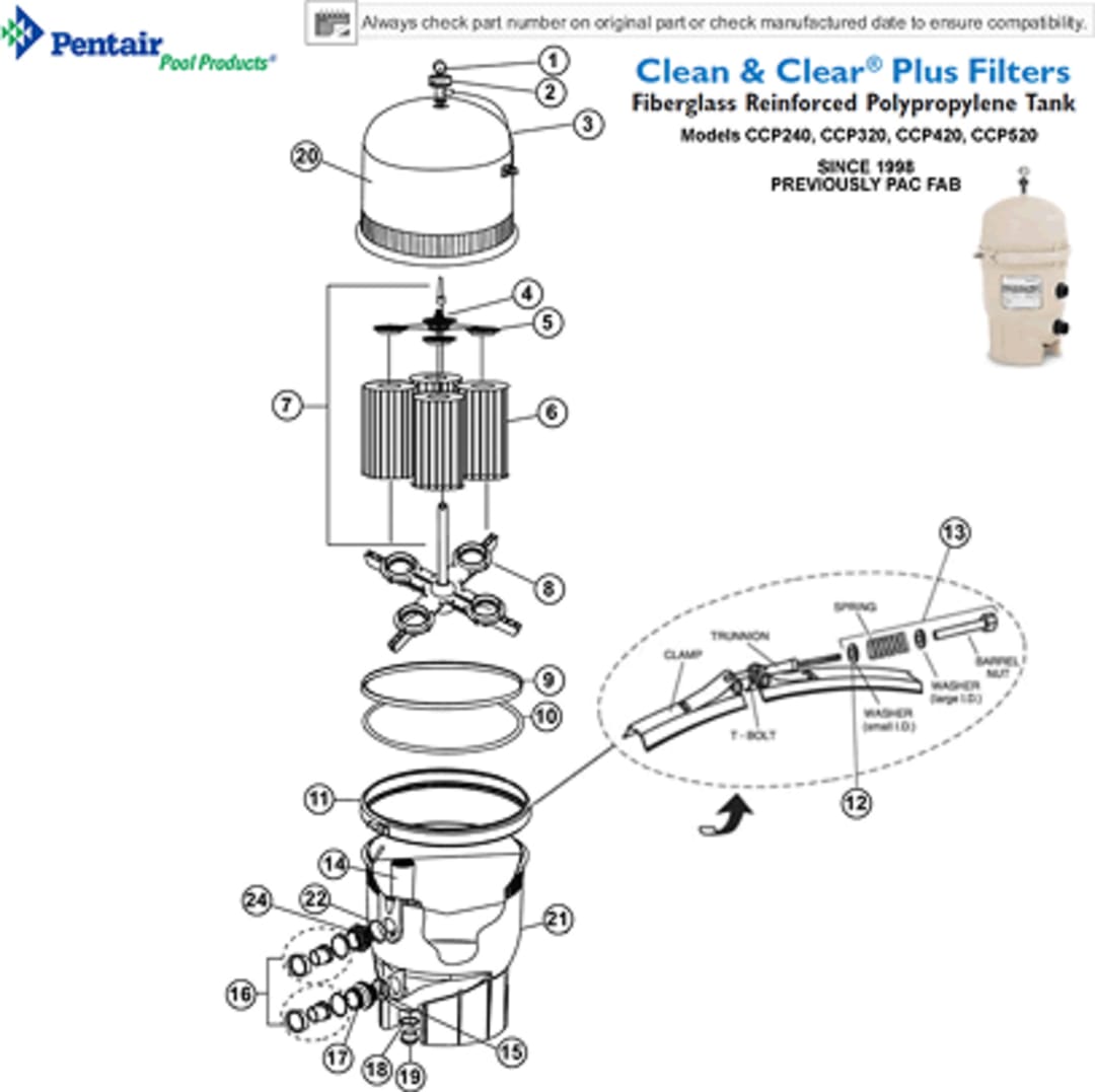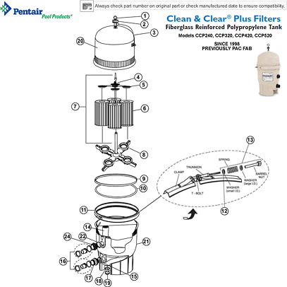 We stock the complete line of genuine Pentair parts for the Clean & Clear Cartridge Filter series. From lids and clamps to manifolds, O-rings, and pressure gauges, we carry everything you need to keep your Pentair Clean & Clear Filter running at peak performance.